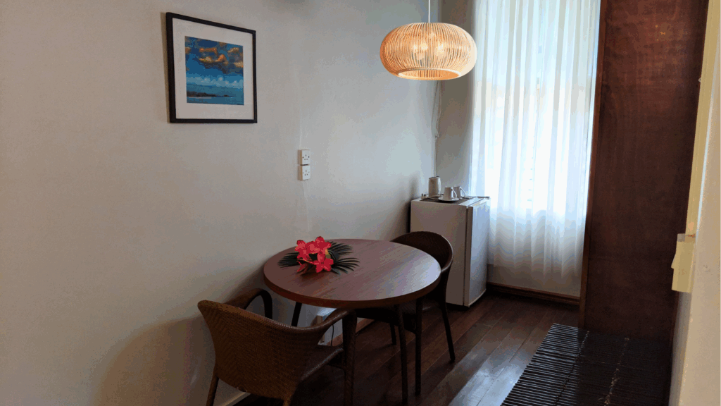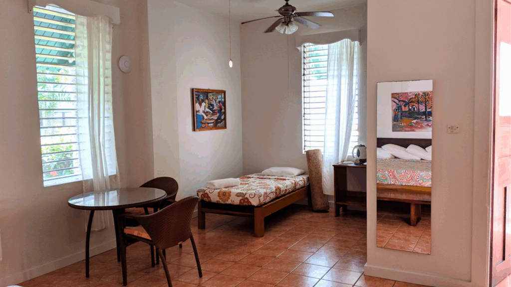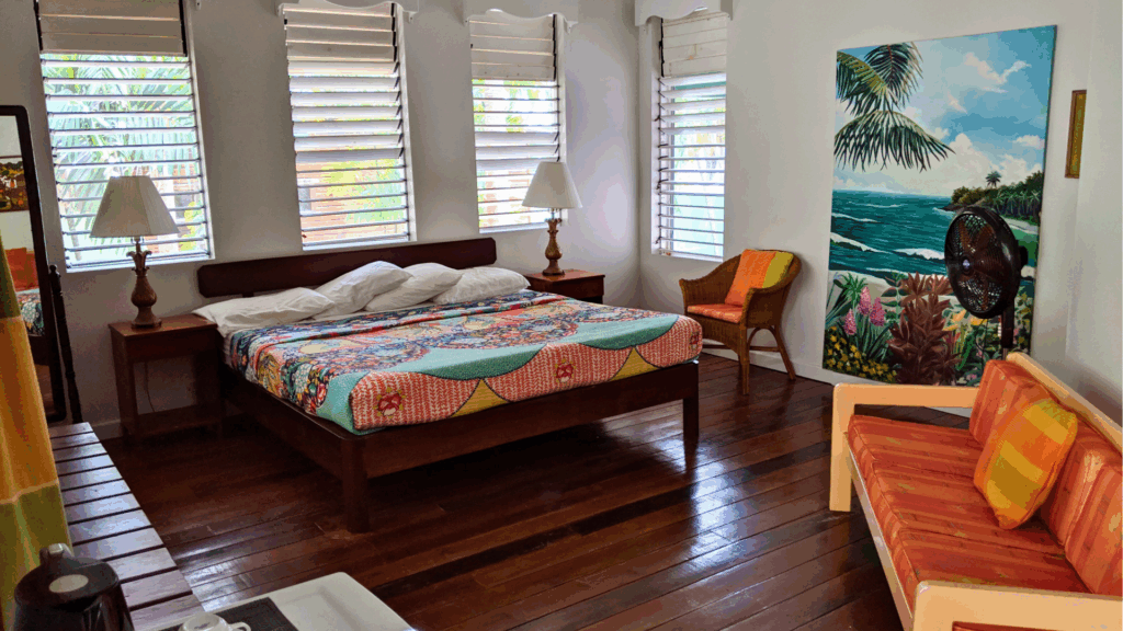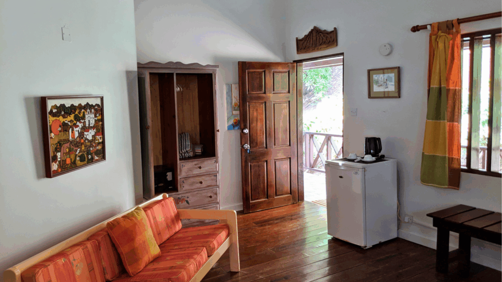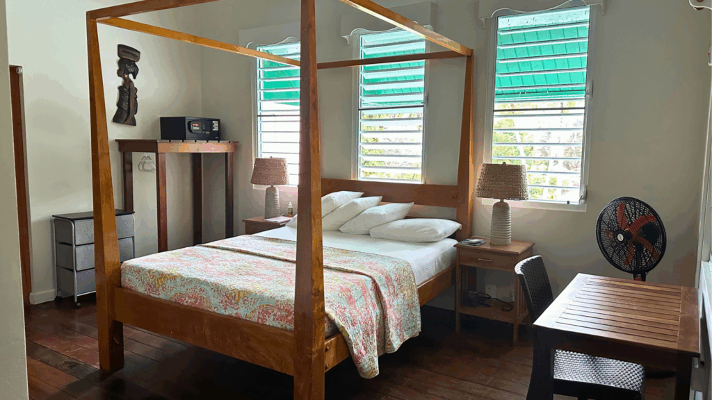 Each room is just 30–50 feet from the beach and designed with comfort in mind. All rooms are fully screened and feature ceiling fans, ensuite bathrooms, and mini refrigerators. Guests enjoy daily cleaning service, complimentary beach towels, and free Wi-Fi throughout the property. Tea kettles, hair dryers, and laundry or ironing services are available upon request, with a small fee for laundry. For added relaxation, in-room massages can be arranged by appointment.