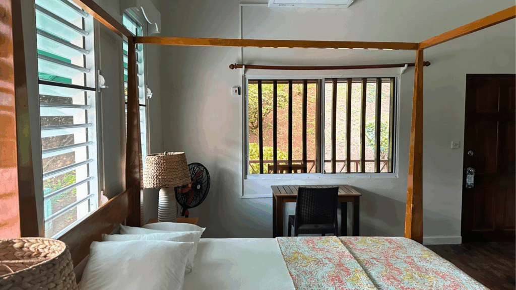 🍃The AC Room is a private garden-view retreat located on the ground floor of the Manor House. With a comfortable queen bed and the cooling comfort of an AC unit, it offers a simple yet serene space to relax and recharge.